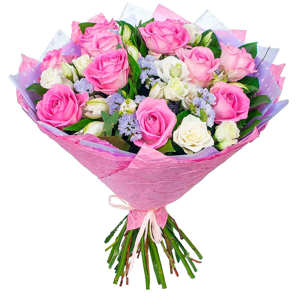 Роза одноголовая, альстромерия, роза кустовая, статица.